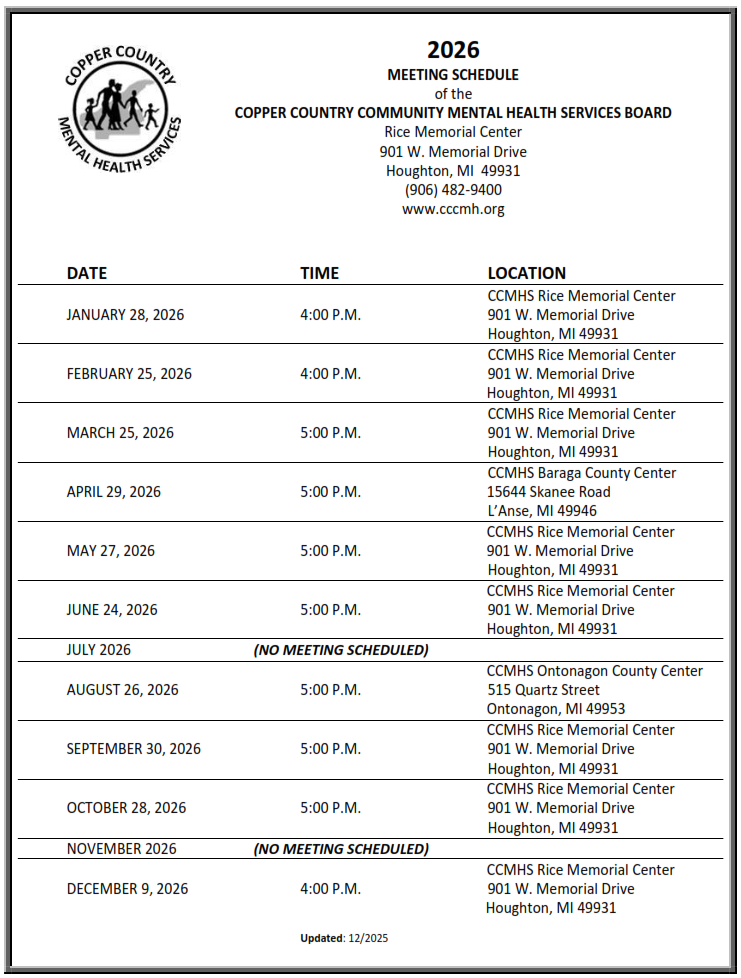 Request Services: 1-877-906-CCMH(2264) or (906)483-5555